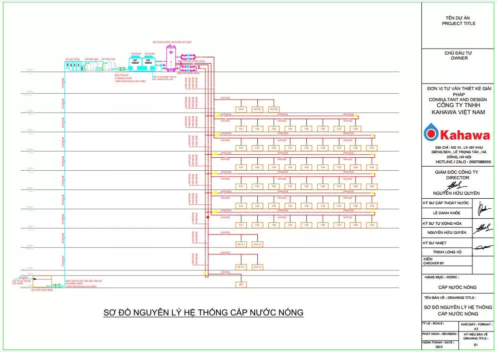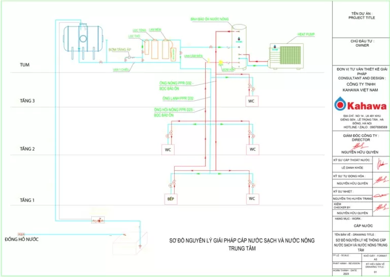 Sơ đồ bản vẽ hệ thống cấp nước sạch và nước nóng trung tâm
